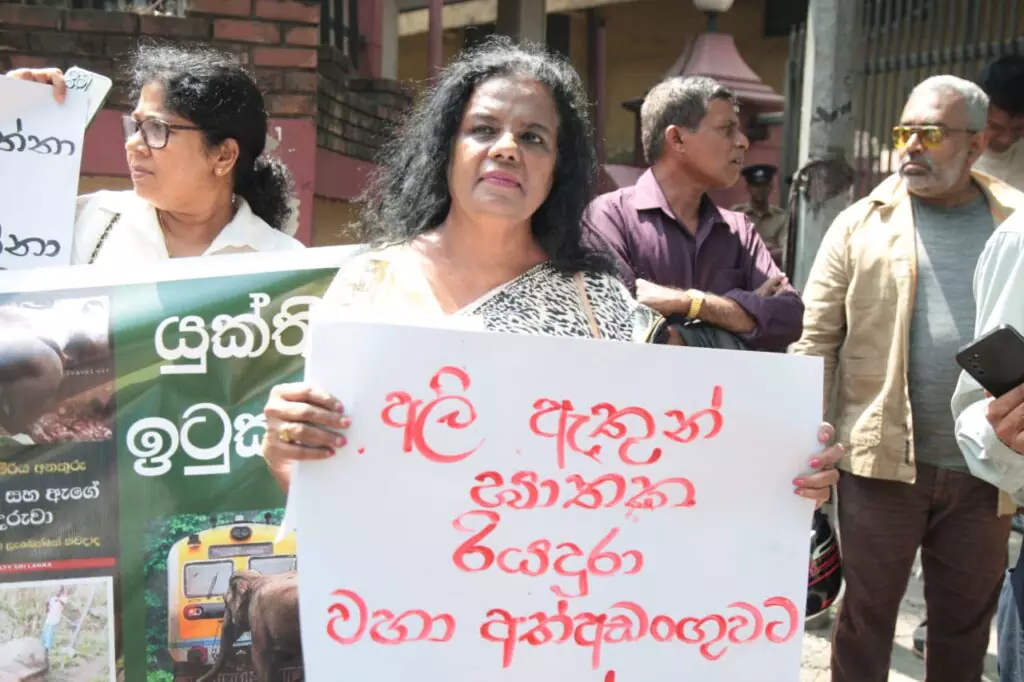 පරසර සත්ව සංවිධාන එකමුතුව විසින් එම විරෝධතාව සංවිධානය කර තිබුණු අතර අහිමි වන අලි ජීවිත වෙනුවෙන් යුක්තිය ඉටුකරන ලෙසයි ඔවුන් බලකළේ.