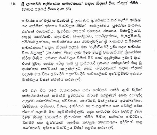 (UTV| කොළඹ) – පාස්කු ත්රස්ත ප්රහාරයත් සමග අත්හිටුවනු ලැබූ නිදහස් පදනම මත පැමිණීමේදී ලබාදෙන සංචාරක වීසා බලපත් නිකුත් කිරීම හෙවත් ඔන් අරයිවල් වීසා ලබාදීම යළි ආරම්භ කිරීමට අමාත්ය මණ්ඩල අනුමැතිය ලැබී තිබේ.