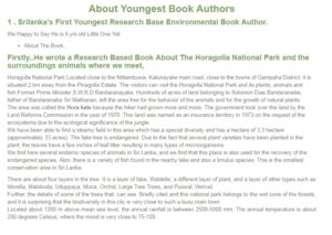 ලොව ලාබාලතම ගවේෂණාත්මක පරිසර ග‍්‍රන්ථ කතෘවරයා ලංකාවෙන්…