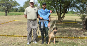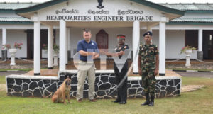 (UTV| කොළඹ) – යුද්ධ හමුදාධිපති ලුතිනන් ජෙනරාල් මහේෂ් සේනානායක සහ ප්‍රධාන ක්ෂේත්‍ර ඉංජිනේරු විසින් ඒකාබද්ධව දියත් කරන ලද මානුෂීය බිම් බෝම්බ ඉවත් කිරීමේ ව්‍යාපෘතියට දිර්ඝ කාලීනව අනුග්‍රහය ලබාදුන් එක්සත් ජනපදයේ මාර්ෂල් ලෙගසි ආයතනය (US-based Marshall Legacy Institute) ලබාදෙන දායකත්වය තවදුරටත් ප්‍රවර්ධනය කරමින් බෙල්ජියන් මලිනොයිස් (Belgian Malinois) වර්ගයේ සිව් හැවිරිදි ‘නම්’ යනුවෙන් හැදින්වෙන සුනඛයෙකු ඉංජිනේරු බලකායේ මානුෂීය බිම් බෝම්බ ඉවත් කිරීමේ ඒකකය වෙත පසුගියදා භාරදෙන ලදී.