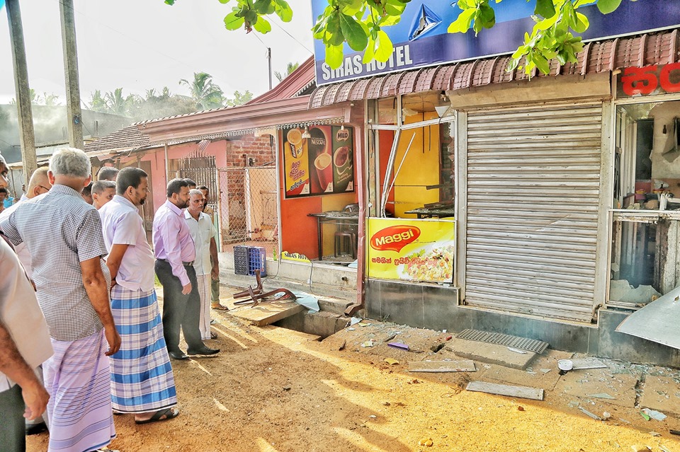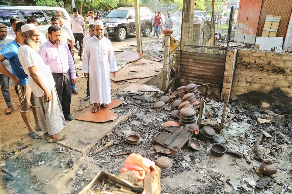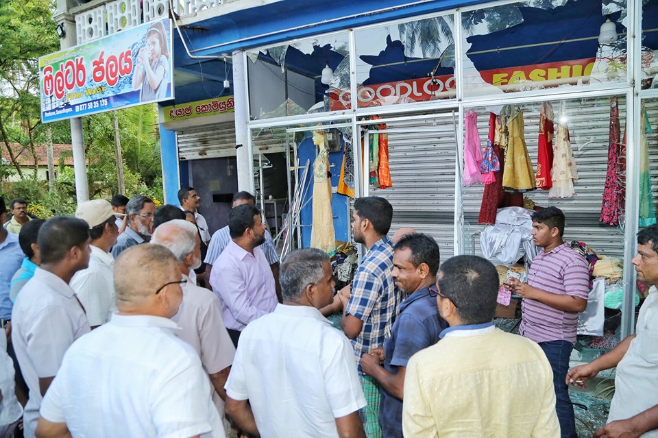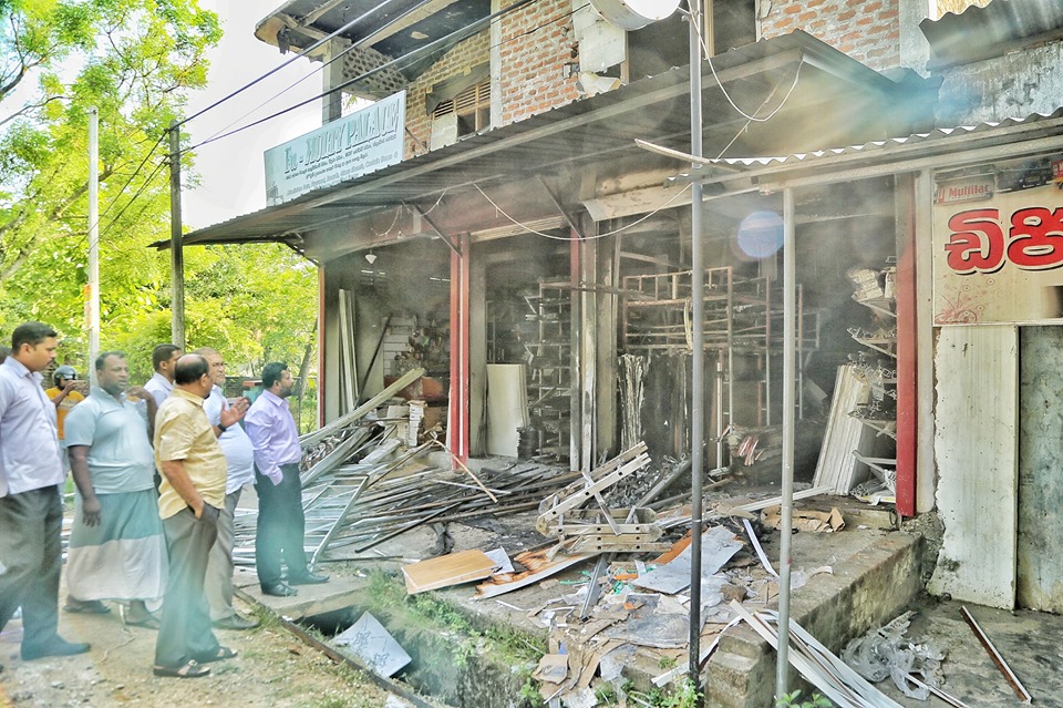 (UTV|COLOMBO) – Leader of the All Ceylon Makkal Congress (ACMC), Minister Rishad Bathiudeen on Tuesday (14) visited the areas in Minuwangoda where rampaging mobs, outnumbered Police and Security Forces, set fire to Muslim-owned shops, vandalised homes and smashed windows, furniture and fittings inside several Mosques.