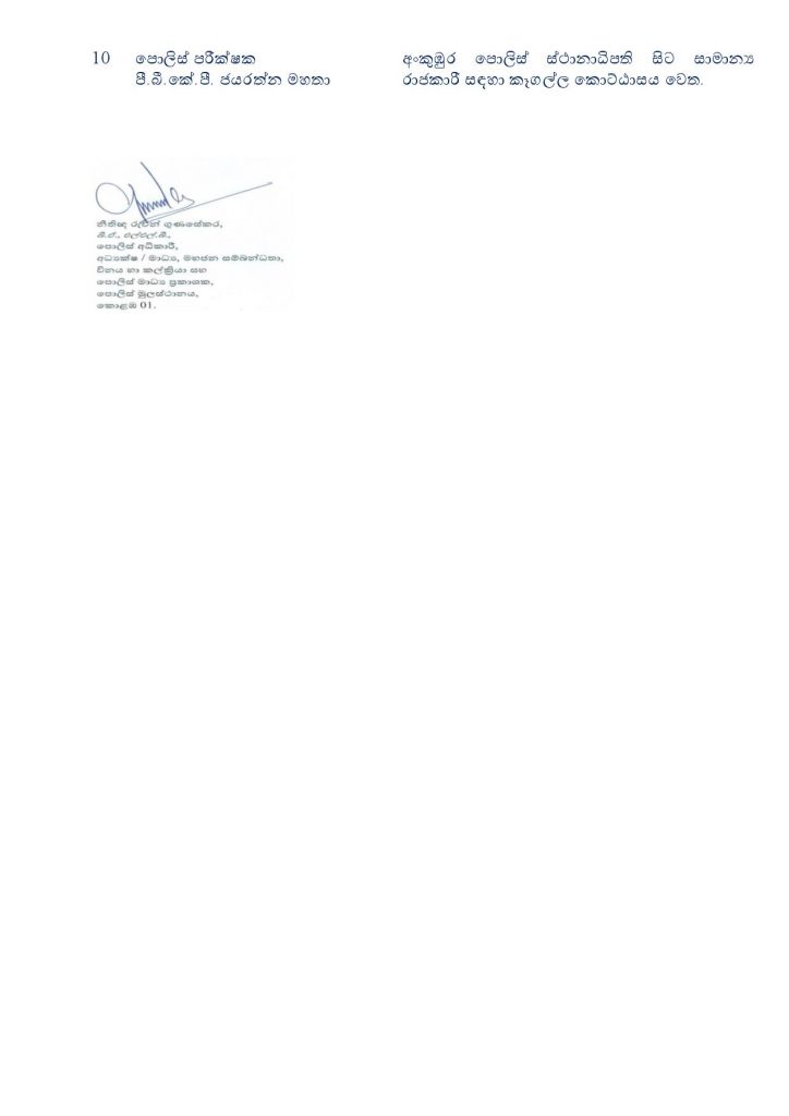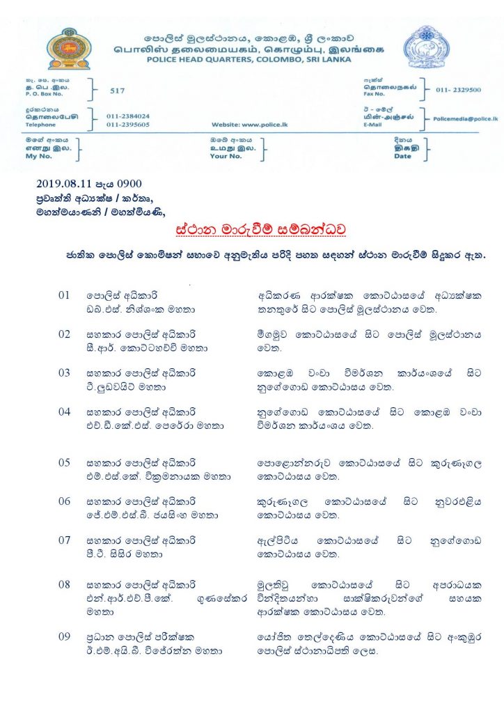 ජාතික පොලිස් කොමිෂන් සභාවේ අනුමැතිය පරිදි අදාළ ස්ථාන මාරුවීම් ලබාදී ඇති බව එමඟින් වැඩිදුරටත් සඳහන් කළේය.