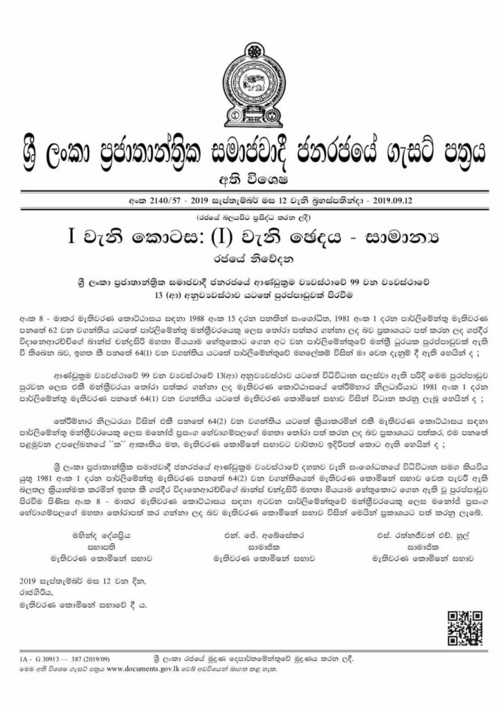 (UTV| කොළඹ) – හිටපු අමාත්ය චන්ද්රසිරි ගජධීර මහතාගේ අභාවප්රාප්ත වීමෙන් පුරප්පාඩු වූ මාතර දිස්ත්රික් නිදහස් සන්ධාන මන්ත්රී ධූරයට දකුණු පළාත් සභා මන්ත්රී මනෝජ් සිරිසේනව පත්කිරීමේ ගැසට් නිවේදනය නිකුත් කර ඇත.