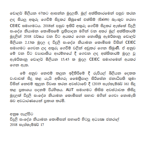 මේ සම්බන්ධයෙන් ඔහු නිකුත් කරන ලද නිවේදනය පහතින්