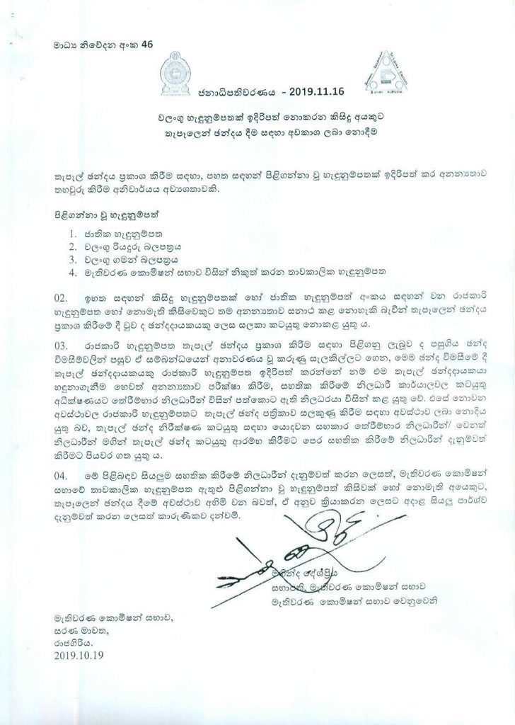 වලංගු හැඳුනුම්පතක් ඉදිරිපත් නොකරන්නාවූ කිසිඳු අයෙකුට තැපැල් ඡන්දය ප්රකාශය කිරීමට අවස්ථාව ලබා නොදීමට මැතිවරණ කොමිසම තීරණය කර තිබේ.