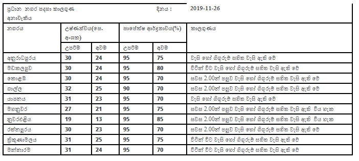 (UTV | කොළඹ) – මේ දිනවල ඊසාන දිග මෝසම් කාළගුණ තත්ත්වය දිවයින පුරා ස්ථාපිත වෙමින් පවතින බව කාළගුණ විද්යා දෙපාර්තමේන්තුව නිවේදනය කරයි.