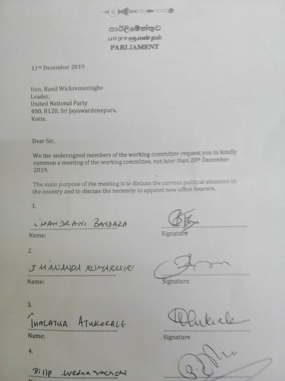 (UTV|COLOMBO) – ஐக்கிய தேசியக் கட்சியின் மத்திய செயற்குழுக் கூட்டத்தினை எதிர்வரும் 20ம் திகதிக்கு முன்னர் கூட்டுமாறு கோரி குறித்த கட்சியின் பாராளுமன்ற உறுப்பினர்கள் 26 பேர் கையொப்பமிட்டு கடிதம் ஒன்று கட்சியின் தலைவர் ரணில் விக்கிரமசிங்கவுக்கு கையளிக்கப்பட்டுள்ளதாக தெரிவிக்கப்படுகின்றது.