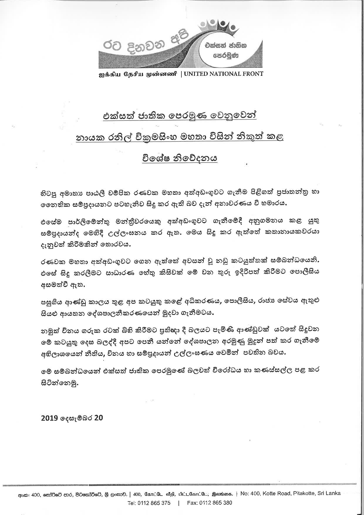 (UTV|COLOMBO) – பாராளுமன்ற உறுப்பினர் மற்றும் முன்னாள் அமைச்சர் பாட்டளி சம்பிக்க ரணவக்கவை கைது செய்தமை ஜனநாயக ரீதியாக ஏற்றுக் கொள்ளப்பட்ட மரபுகளுக்கு முரணானது என நிரூபணமாகியுள்ளதாக ஐக்கிய தேசியக் முன்னணியின் தலைவர் ரணில் விக்கிரமசிங்க அறிக்கை ஒன்றினூடாக தெரிவித்துள்ளார்.