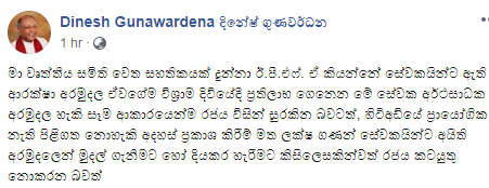 (UTV | කොළඹ) – විශ්රාම දිවියේදී ප්රතිලාභ ගෙනෙන සේවක අර්ථසාධක අරමුදල හැකි සෑම ආකාරයෙන්ම රජය විසින් සුරකින බවට තමන් වෘත්තීය සමිති වෙත සහතිකයක් දුන් බව විදේශ කටයුතු, නිපුණතා සංවර්ධන හා රැකී රක්ෂා හා කම්කරු අමාත්ය දිනේෂ් ගුණවර්ධන මහතා සිය ෆේස්බුක් පිටුවේ සටහනක් තබමින් සඳහන් කර සිටී.