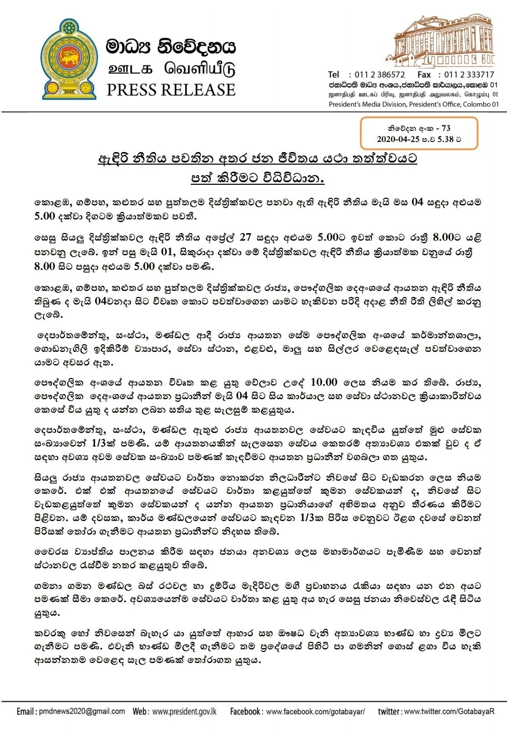 අවධානම් දිස්ත්‍රික්කවල ඇඳිරි නීතිය යළිත් දීර්ඝ කරයි [RELEASE]