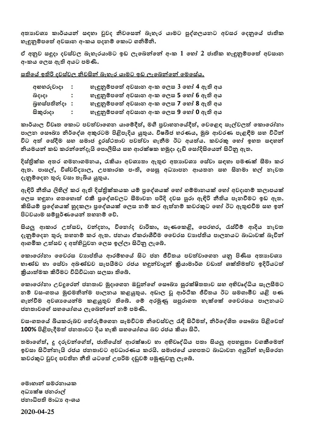 සෙසු දිස්ත්‍රික්කවල ඇඳිරි නීතිය 27 වනදා ලිහිල් කරනු ලැබේ.