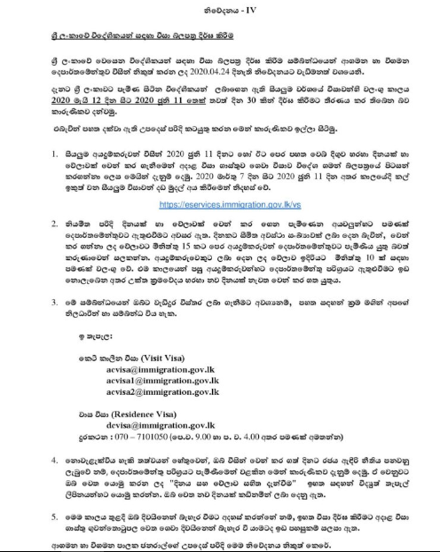 මෙරට සිටින විදේශිකයන්ගේ වීසා වලංගු කාලය මසකින් දීර්ඝ කරයි [RELEASE]
