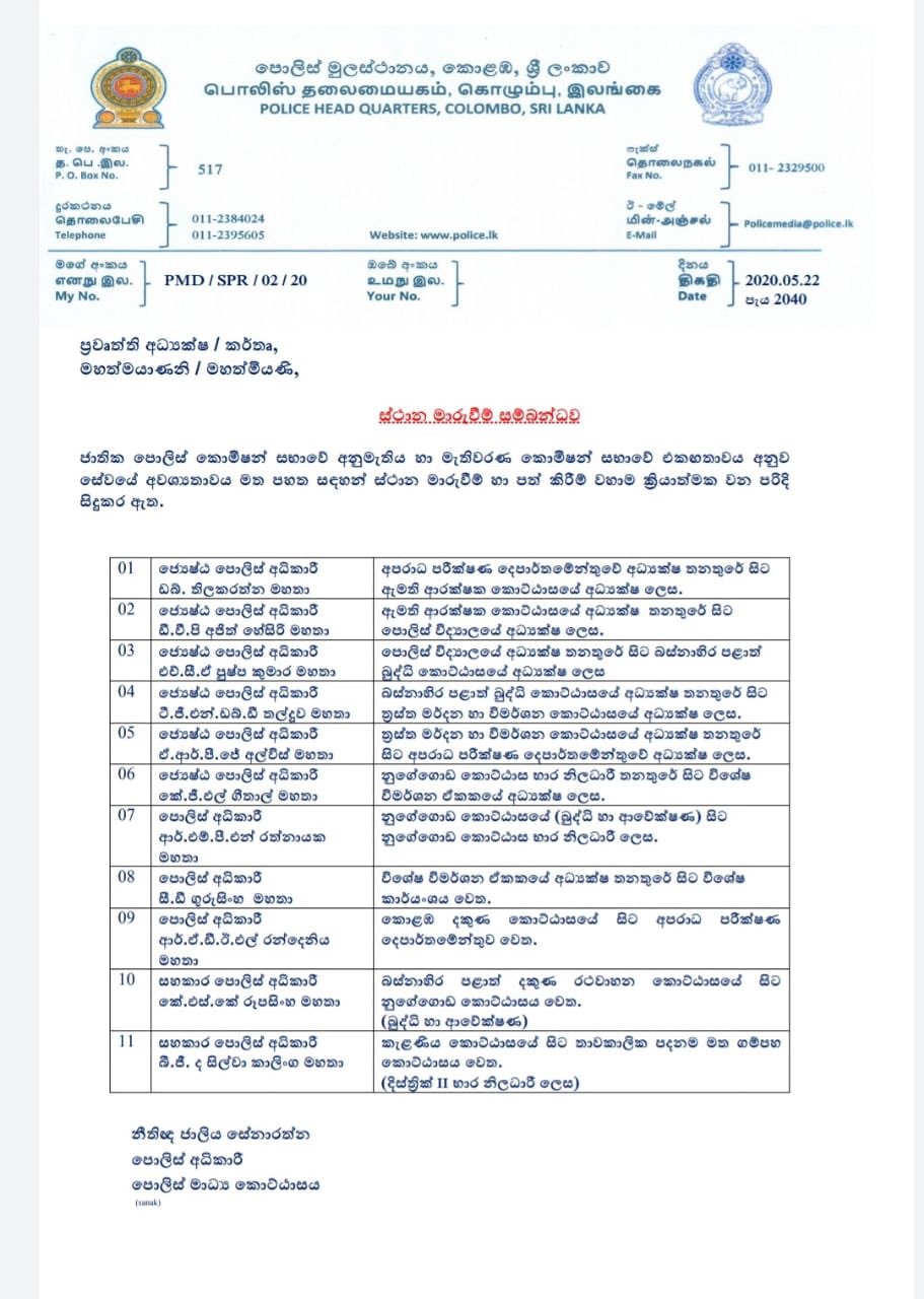 CID -TID ඇතුළු පොලිසියේ 11 කට ස්ථාන මාරුවීම් [RELEASE]