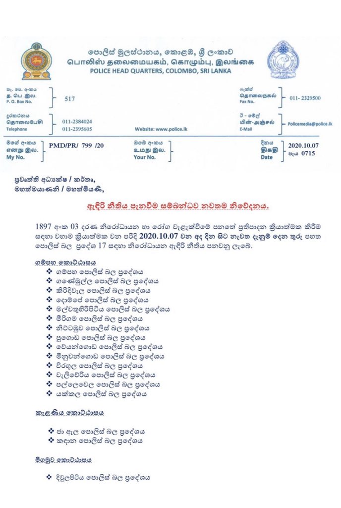 ගම්පහ,ජා-ඇල සහ කඳානට පොලිස් ඇදිරි නීතිය [RELEASE]