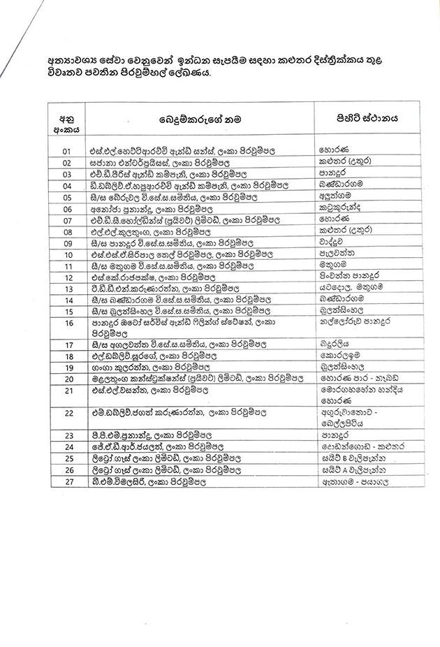 *කළුතර ඉන්ධන බෙදුම්හල් -27ක්ද වශයෙන් විවෘතව තැබීමට එම සංස්ථාව පියවර ගෙන ඇත.