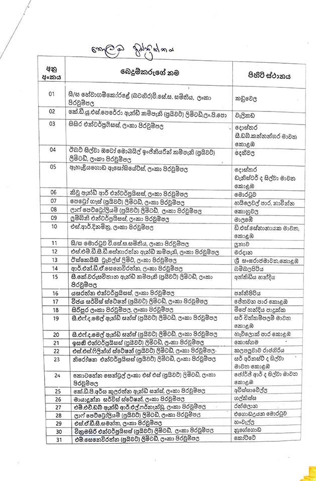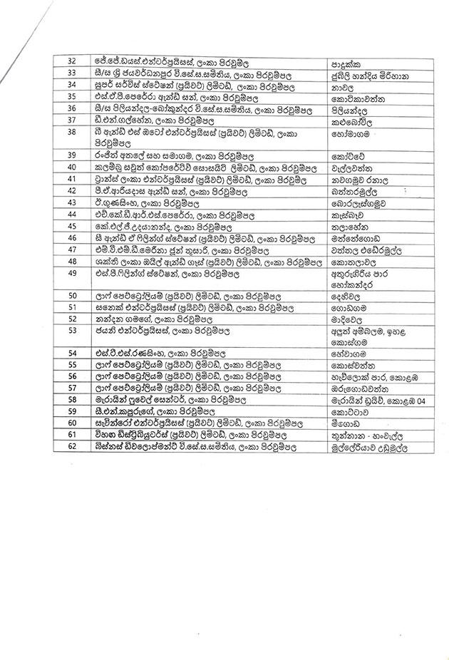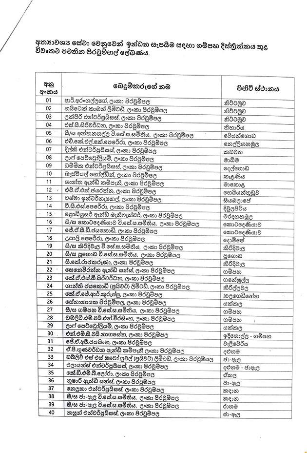 විවෘතව තැබෙන ඉන්ධන බෙදුම්හල් ලේඛනය පහත දැක්වෙන නිවේදනයේ දැක්වෙයි.