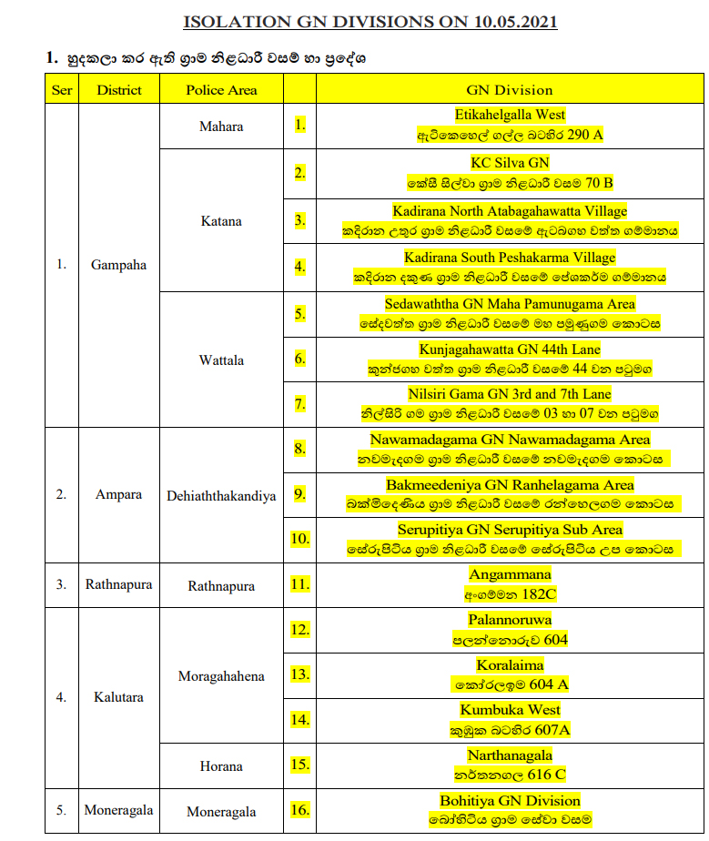 ග්‍රාම නිලධාරී වසම් 16 ක් හුදෙකලා කෙරේ [RELEASE]