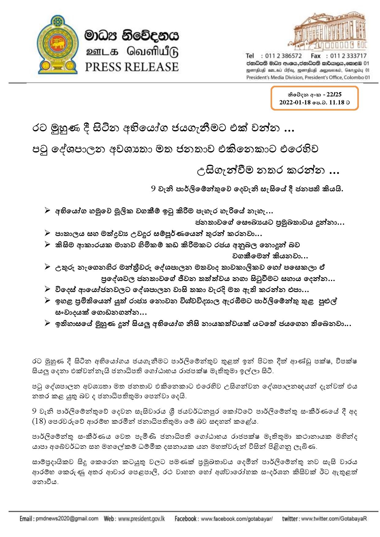 එමෙන්ම එවැනි ක්රියා සඳහා කිසිදු ඉඩක් නොතබන බවයි 09 වන පාර්ලිමේන්තුවේ 02 වන සැසිවාරය ආරම්භ කරමින් ආණ්ඩුවේ ප්රතිපත්ති ප්රකාශය ඉදිරිපත් කරමින් ජනාධිපතිවරයා කියාසිටියේ.