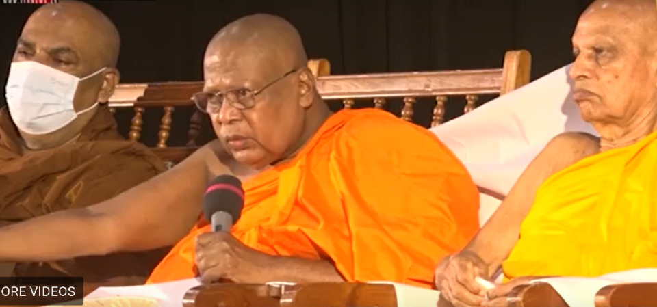 සඟ සමුලුව ඇමතූ පූජ්ය ඕමරේ කස්සප ස්වාමීන්වහන්සේ ප්රකාශ කළේ බුදුදහමට තර්ජනයක් එල්ල වන ආකාරයේ මහාචාර්යවරියක් දේශපාලන වේදිකාවක අදහස් දක්වන බවයි.