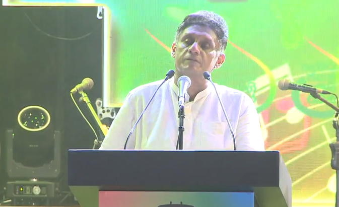 සජිත් ප්රේමදාස මහතා මෙසේ ද කීවේය. මට ආරංචියි අනුර මෙතන ඇවිත් රැස්වීමක් කළා ලු. හැබැයි තනියම ලු ආවේ. රනිල් වික්රමසිංහ මහත්තයා ආවේ නැහැලු. දැන් දෙන්නම ඩීල් එකක් දාගෙන. කොහොම හරි සජිත් ප්රේමදාසව පරද්දන්න ඕනේ. ඇයි ?. ඒගොල්ලෝ සජිත් ට බයයි. මට කා සමගවත් ඩීල් එකක් නැහැ. මට තියෙන්නේ ජනතාවගේ සමාජ ආර්ථිකය ශක්තිමත් කිරීමේ අවශ්යතාවය. රට ගොඩ නගන අවශ්යතාවය වෙනුවෙන් සමගි ජන බලවේගය කැපවෙලා වැඩ කරනවා. සැප්තැම්බර් 21 වෙනිදා දුරකථනයට ඔබේ වටිනා ඡන්දය ලබාදී ජනතාවාදී ආණ්ඩුවක් ගොඩනගන්න සහය ලබාදෙන්න. ඒ සඳහා රටපුරා ජනතාව අප සමග අත්වැල් බැඳගන්නවා.