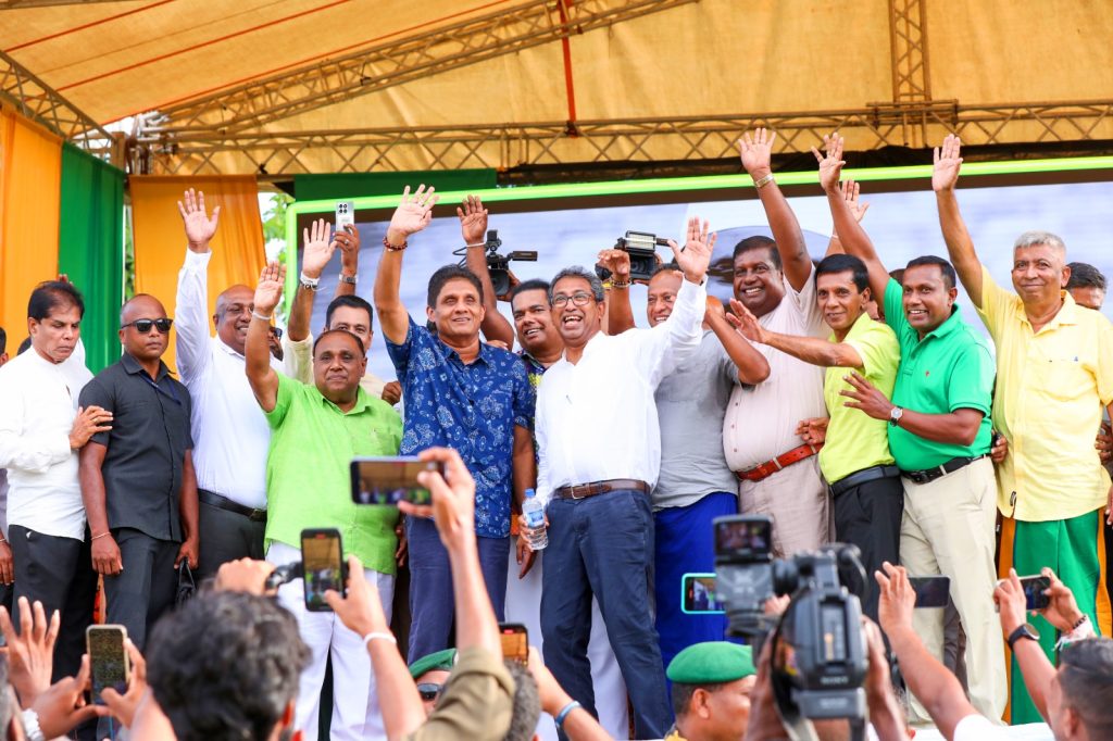 සමගි ජන බලවේගයේ ජනාධිපතිධුර අපේක්ෂක විපක්ෂ නායක සජිත් ප්රේමදාස මහතා. මෙසේ ද කීවේය. “බුද්ධි අංශ වාර්තා අනුව ලක්ෂ විස්සකට වැඩි ඡන්දයෙන් අපි අනිවාර්යයෙන්ම ජනාධිපතිවරණය ජයග්රහණය කරනවා. මගේ කකුලෙන් අදින අනුර රනිල් දේශපාලන ජෝඩුව අද පහළ මට්ටමට වැටිලා.