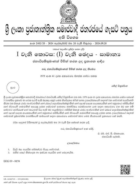Trending Newsඑසැන පුවත්දේශීයවිදුලිය සහ ඛනිජ තෙල් අත්යවශ්ය සේවා කරමින් ගැසට් නිවේදනයක් by Editor OSeptember 21, 2024September 21, 20240116 Share0 විදුලිබල සැපයීම සම්බන්ධ සියලු සේවාවන්, සහ ඛනිජ තෙල් නිෂ්පාදන හා ඉන්ධන සැපයීම සහ බෙදාහැරීම සම්බන්ධ සේවා, අත්යවශ්ය සේවා බවට පත්කරමින් ජනාධිපති ලේකම්ගේ අත්සනින් ගැසට් නිවේදනයක් 20 වෙනිදා නිකුත් කර තිබේ. එම ගැසට් නිවේදනය පහතින්