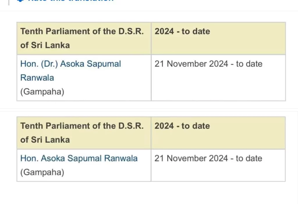 පාර්ලිමේන්තු වෙබ් අඩවියේ කතානායක ආචාර්යය අශෝක රන්වල මහතාගේ නම ඉදිරියෙන් මුලින් යොදා තිබූ ‘ආචාර්ය’ කොටස ඉවත් කර තිබේ. වෙබ් අඩවියෙහි පෙර දිනවල කතානායක නම ඉදිරියේ ‘ආචාර්ය’ (Dr) ලෙස සඳහන්ව තිබින.