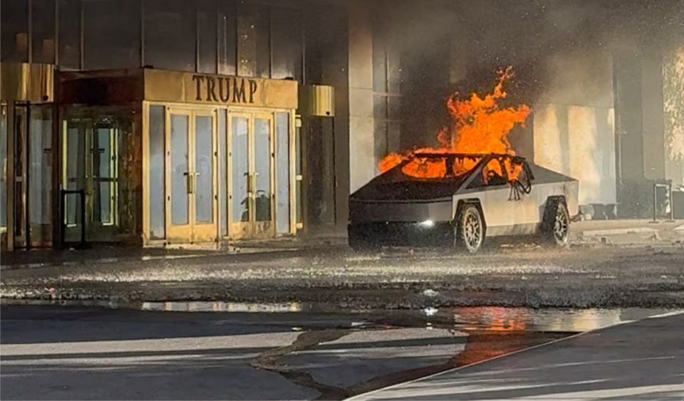 අමෙරිකාවේ නෙවාඩාවේ ලාස්වේගාස් හි ඩොනල්ඩ් ට්රම්ප්ට අයත් හෝටලයකට පිටත ඉන්ධන කැනිස්ටර් සහ ගිනිකෙළි මෝටාර් පිරවූ ටෙස්ලා සයිබර් ට්රක් රථයක් පුපුරා ගොස් තිබෙනවා. අනතුරින් රියදුරු මිය ගොස් තවත් හත් දෙනෙකු තුවාල ලබා ඇති බවයි පොලීසිය පැවසුවේ. තුවාල ලැබූ සියළු දෙනා යෞවනයන් බව සඳහන්.