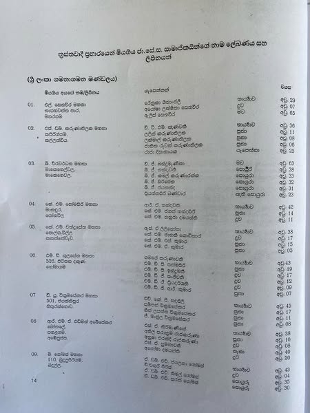 සමාජ මාධ්ය වෙත එක් කර ඇති එම නාම ලේඛනය පහතින්
