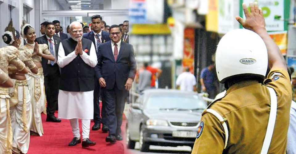 ඉන්දීය අග්රාමාත්ය නරේන්ද්ර මෝදි මහතාගේ ශ්රී ලංකා සංචාරය හේතුවෙන් සිදුකරන රථවාහන සැලැස්මට අනුව කොළඹ අවට මාර්ග වසාතැබෙන ආකාරය සම්බන්ධයෙන් පොලීසිය විසින් අද (05) නවතම නිවේදනයක් නිකුත් කර තිබේ.