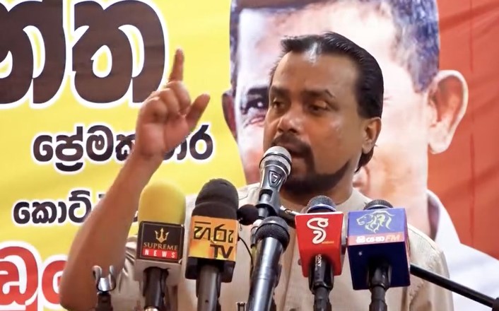 වැඩිදුරටත් අදහස් දැක්වූ හිටපු මන්ත්රිවරයා මෙසේ ද කීවේය. ඉන්දියාව සමග අත්සන් කරපු ගිවිසුම්වල තිබුණේ මොනවද කියලා, කැබිනට් මණ්ඩලයවත් දන්නේ නැහැ. ‘මේ රටේ සාම්පූර් බලාගාරය හදද්දී විරුද්ධ වුණේ ජනතා විමුක්ති පෙරමුණයි. උසාවි ගියෙත් ඒ පක්ෂයයි. අපි ඒවා දින්නා කියලා උදන් ඇනපු අයම දැන් ඒවාට අත්සන් කරනවා. මේවා කරන්නේ රෙදි ඇදගෙනද කියලා අපිට තේරෙන්නේ නෑ. එදා 1815 උඩරට ගිවිසුමටත් වඩා බරපතළ පාවාදීමක් තමයි අද මේ වෙලාවේ සිදුවන්නේ. මේ පාවාදීම්වලට එරෙහි පෝස්ටර් උදේ පාන්දර ඉඳන් පොලිසිය දාලා ගලවනවා. ජනතා විමුක්ති පෙරමුණ විපක්ෂයේ ඉඳගෙන පෝස්ටර් අලවන කාලේ ඒවා ගලවන්න මොකෙක්වත් හිටියේ නෑ. දැන් ජනතා විමුක්ති පෙරමුණේ ආණ්ඩුව යටතේ පෝස්ටරයක් අළවන්න නිදහස නෑ. මෙන්න මේ පාවාදීම් කරන්න ඕන නිසයි එදා අපිව එළියට දැම්මේ. තාත්තා වගේ හිටපු සෝමවංශ අමරසිංහ එළියට දැම්මේ. ජනාධිපතිකම නොවෙයි දෙන්න තියෙන්නේ පචාධිපතිකමයි. මෝදිට ගහලා තියෙන පෝස්ටර්වල ඉංග්රීසි ව්යාකරණත් වැරැදියි.