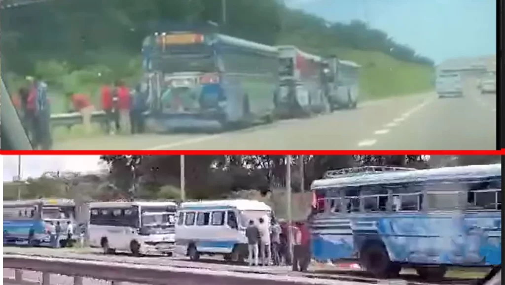ජාතික ජනබලවේගය විසින් කොළඹ ගාලු මුවදොර පිටියේදී පවත්වන ලද මැයි දින සමරුමට සහභාග වූ ආධාරකරුවන් ප්රවාහනය කළ බස් රථ අධිවේගී මාර්ගයන්හි නවත්වා ආහාර ගන්නා වීඩියෝ රැසක් සමාජ ජාල වල හුවමාරු වෙයි.