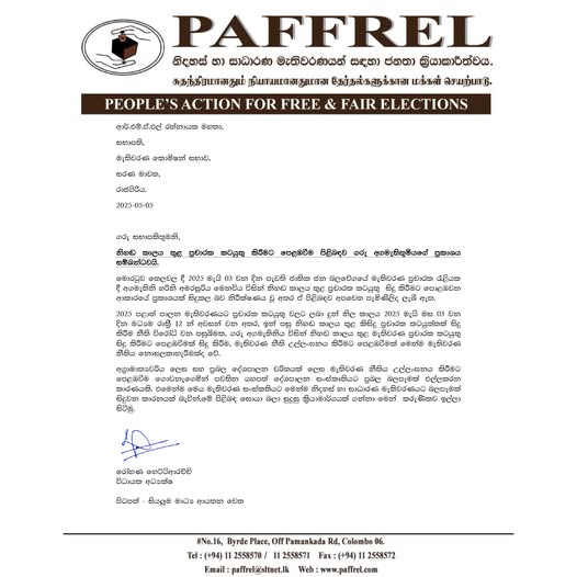 අගමැති හරිනි මැතිවරණ නීතිය උල්ලංඝනය කරලා..? – සමගි ජනබලවේගය සහ පැෆරල් සංවිධානයෙන් කොමිෂමට පැමිණිලි