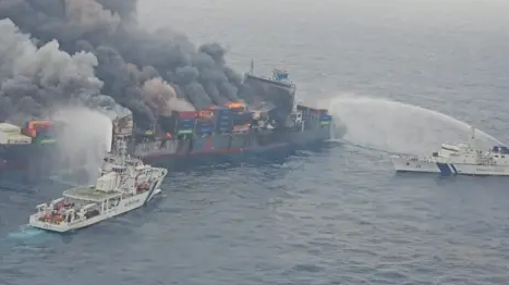 දකුණු කේරළ ප්රාන්ත වෙරළට ආසන්නව සිංගප්පූරු ධජය සහිත භාණ්ඩ ප්රවාහන නෞකාවක ඇති වූ ගින්නක් මැඩපැවැත්වීම සඳහා ඉන්දීය වෙරළාරක්ෂක බලකාය උත්සාහ කරමින් සිටින බව වාර්තා වේ.