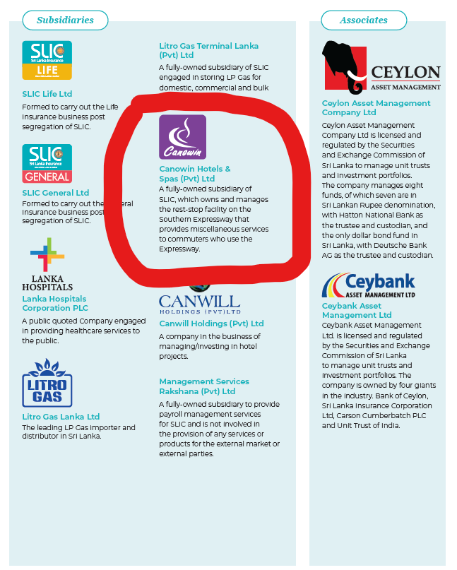 දක්ෂිණ අධිවේගී මාර්ගයේ පිහිටි “සේවා ප්රදේශය” හිමිකාරීත්වය දරනු ලබන්නේ Canowin Hotels & Spas (Pvt) Ltd සමාගම විසිනි.