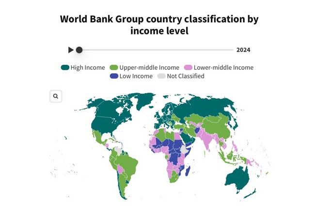 මෙම වසරේ ජූනි 30 දක්වා කාලය සඳහා ලෝක බැංකුවේ රටවල් වර්ගීකරණ එළිදක්වා තිබේ. ඒ අනුව ශ්රී ලංකාව තවදුරටත් පහල මධ්යම ආදායම් ලබන රටක් ලෙස පවතී.