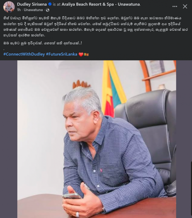 හිස් වාචාල මිනිස්සුන්ට කැමති විදිහකට ඔබව මනින්න ඉඩ දෙන්නැයි ප්‍රකට ව්‍යාපාරික ඩඩ්ලි සිරිසේන මහතා සිය ෆේස්බුක් ගිණුමේ සටහනක් තබා ඇත.