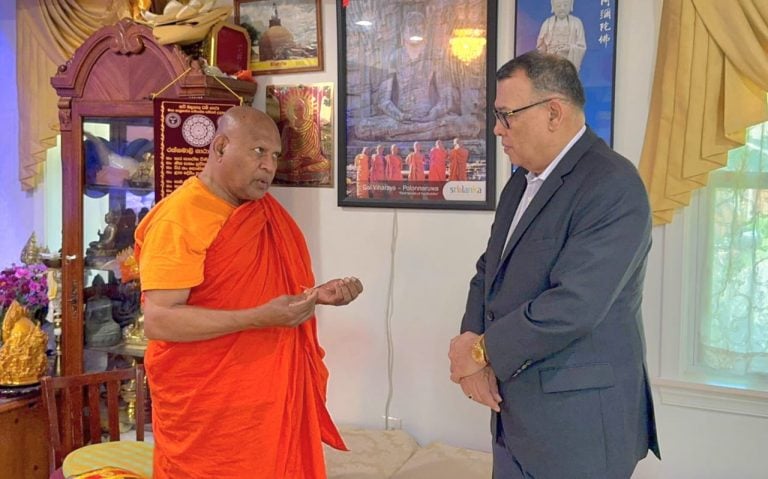ඇමරිකා එක්සත් ජනපදයේ ශ්රි ලංකා තානාපති මහින්ද සමරසිංහ මහතා අද පෙරවරුවේ ඇමරිකාවේ ප්රධාන අධිකරණ සංඝනායක, මේරිලන්ඩ් ජාත්යන්තර බෞද්ධ විහාරස්ථානයේ විහාරාධිපති අතිපූජ්ය කටුගස්තොට උපරතන නායක හිමිපාණන් වහන්සේ බැහැදැක ආශිර්වාද ලබා ගත්තේය.