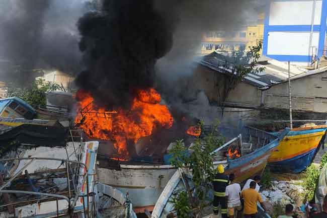 මේ වන විට ධීවර යාත්රා 4ක් මෙම ගින්නට හසුව විනාශ වී තිබේ.