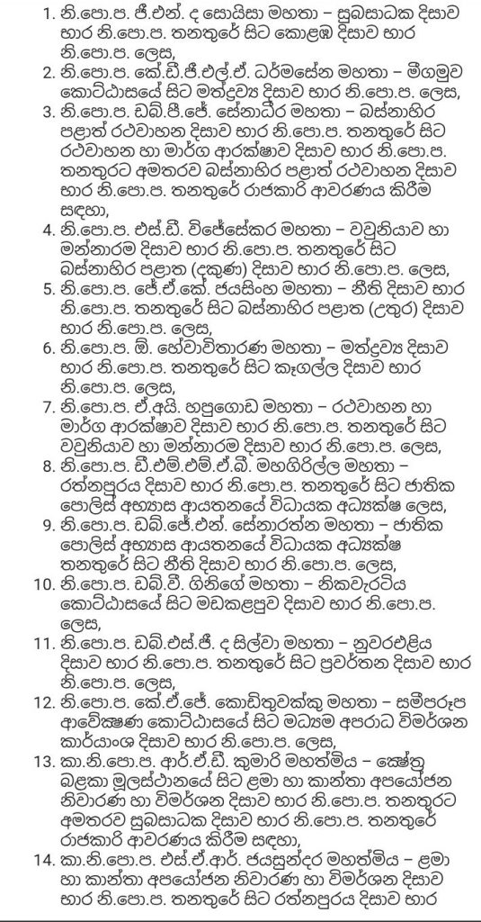ස්ථාන මාරු ලැබූ නියෝජ්ය පොලිස්පතිවරුන්ගේ නම් පහත දැක්වේ.