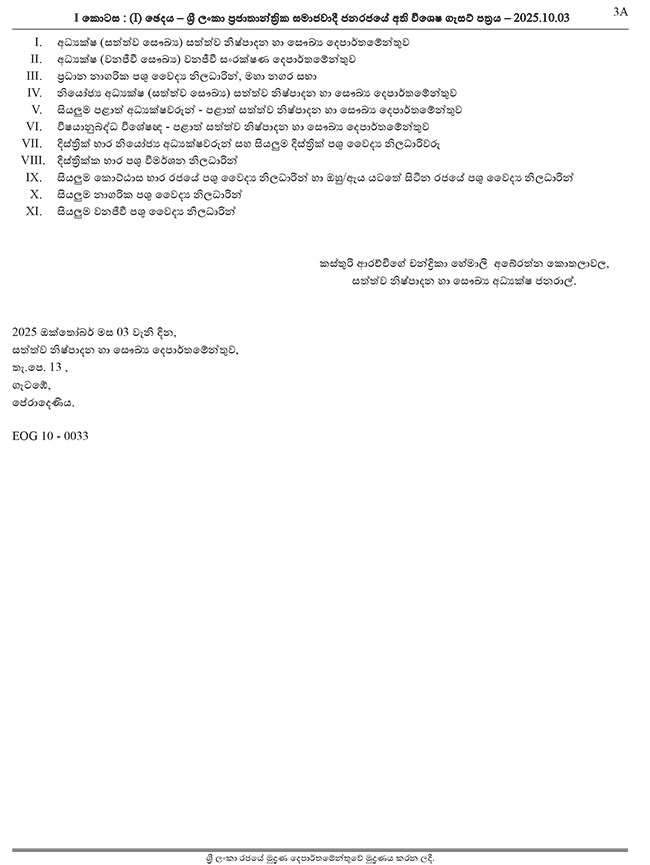 සත්ත්ව නිෂ්පාදන හා සෞඛ්ය අධ්යක්ෂ ජනරාල්වරිය විසින් මෙම ගැසට් නිවේදනයක් නිවේදනය නිකුත් කර ඇත.
