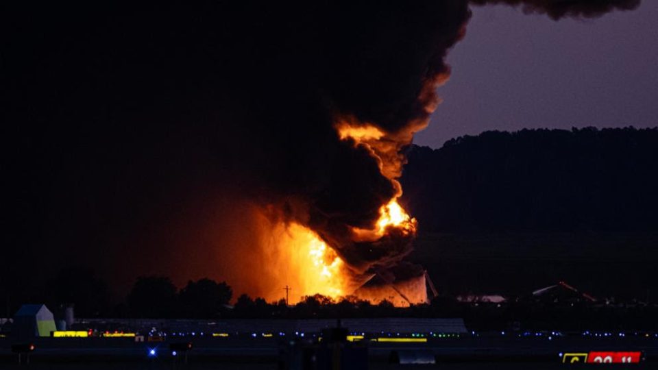 ඇමෙරිකාවේ කෙන්ටකි ප්රාන්තයේ ලුයිස්විල් ජාත්යන්තර ගුවන්තොටුපොළේදී භාණ්ඩ ප්රවාහන ගුවන් යානයක් කඩාවැටී ගිනිගෙන තිබේ.