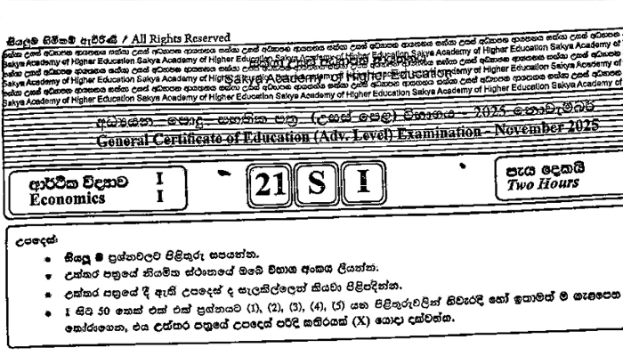 මෙවර උසස් පෙළ විභාගයේ ආර්ථික විද්යා ප්රශ්න පත්රය පිටවී ඇති බවට අද (25) පාර්ලිමේන්තුවේදී චෝදනා එල්ල විය.