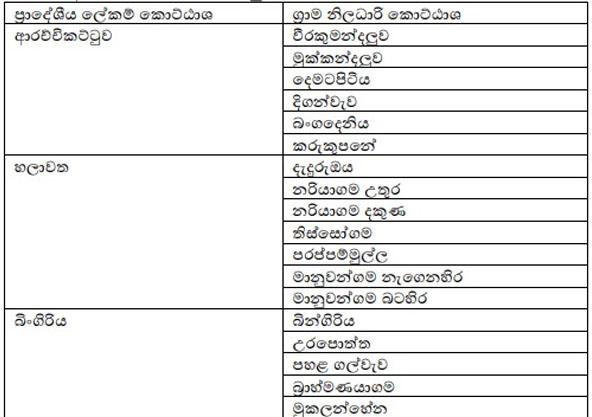 දැදුරු ඔය ද්රෝණියේ පහත සඳහන් ප්රාදේශීය ලේකම් කොට්ඨාශවලට අයත් ග්රාම නිලධාරි කොට්ඨාශයන්හි දැදුරු ඔය ද්රෝණියේ පහළ නිම්නයේ ප්රදේශවලට ඉදිරි පැය කිහිපය තුළ අධි ගංවතුරක් ඇති වෙනු ඇත.
