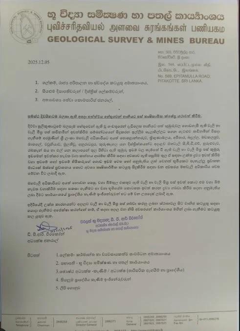 භූ විද්යා සමීක්ෂණ හා පතල් කාර්යාංශයෙන් නිකුත් කළ නිවේදනය පහතින්