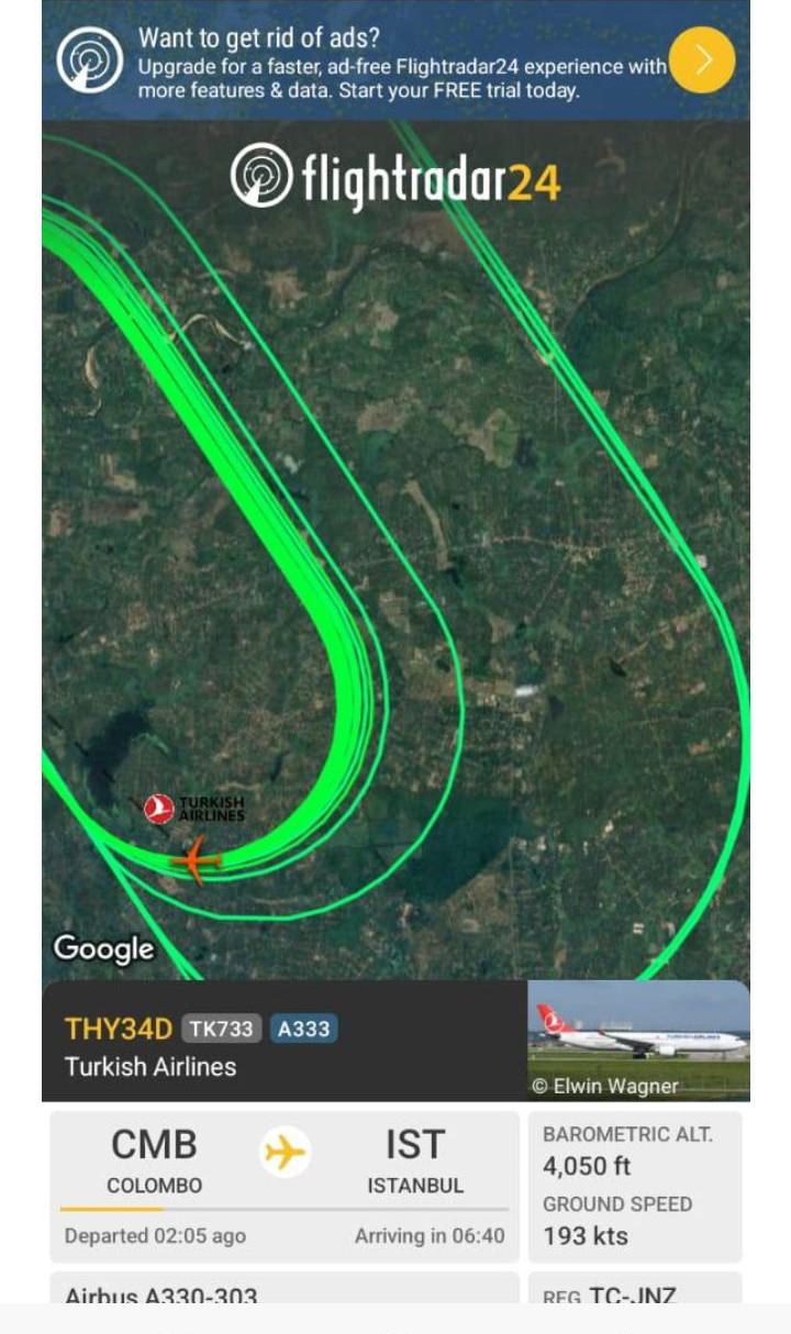 කටුනායක ජාත්යන්තර ගුවන් තොටුපොළින් තුර්කියේ ඉස්තාන්බුල් නුවර බලා, ඊයේ (16), රාත්රී 10:01 ට පිටත් වූ Turkish Airlines / THY34D ගුවන් යානයේ Landing Gear දෝෂයක් නිසා එය නැවත කටුනායකට හදිසි ගොඩ බැස්වීමක් කර තිබේ. .
