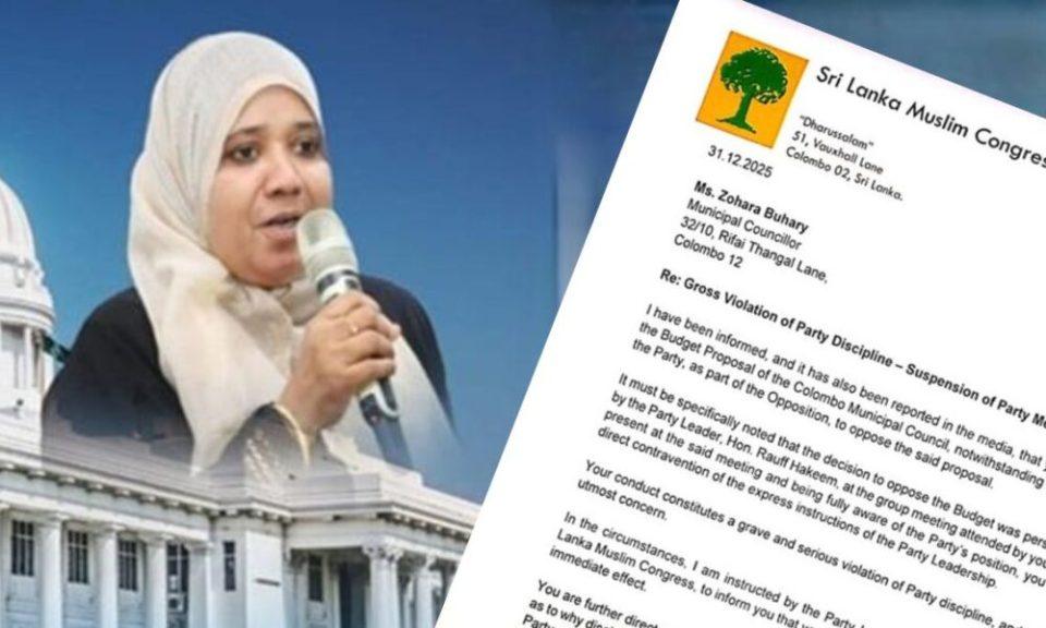 කොළඹ මහ නගර සභාවේ අයවැය ඡන්ද විමසීමේදී ඊට පක්ෂව ඡන්දය ප්රකාශ කළ සොහාරා බුහාරි මන්ත්රීවරිය පක්ෂයෙන් නෙරපූූ බව ශ්රී ලංකා මුස්ලිම් කොංග්රසය සදහන් කරයි.