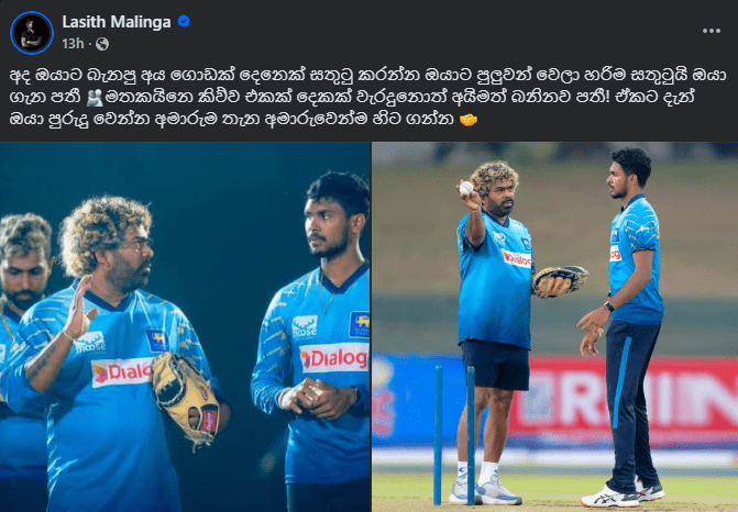 මාලිංගගේ මෙම සටහන තුළින් මතීෂ පතිරණගේ දක්ෂතාව අගය කරන අතරම, ජාත්යන්තර ක්රිකට් පිටියේදී එල්ල වන පීඩනයට සහ විවේචන වලට ශක්තිමත්ව මුහුණ දිය යුතු ආකාරය පිළිබඳවද ඔහු උපදෙස් ලබා දී තිබේ